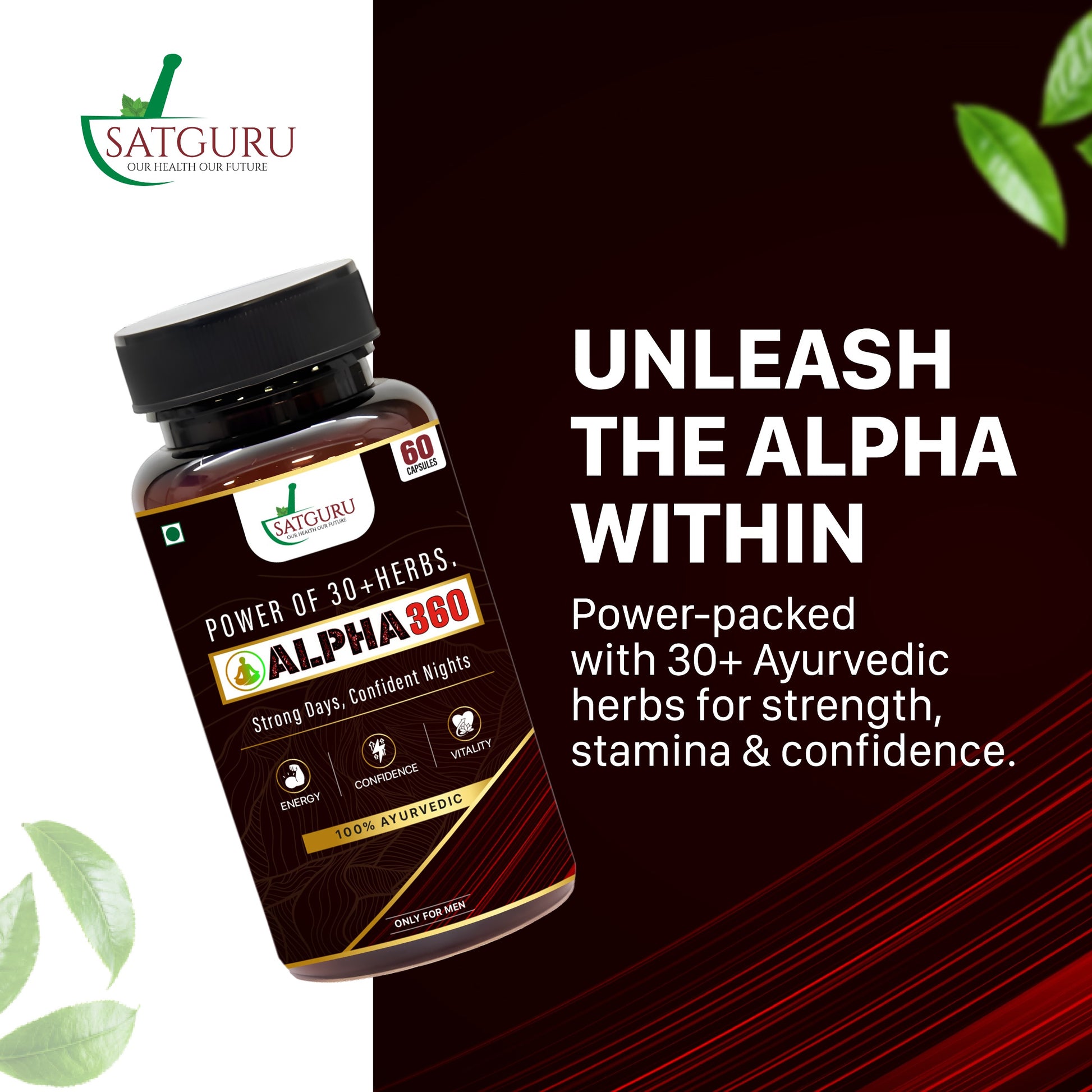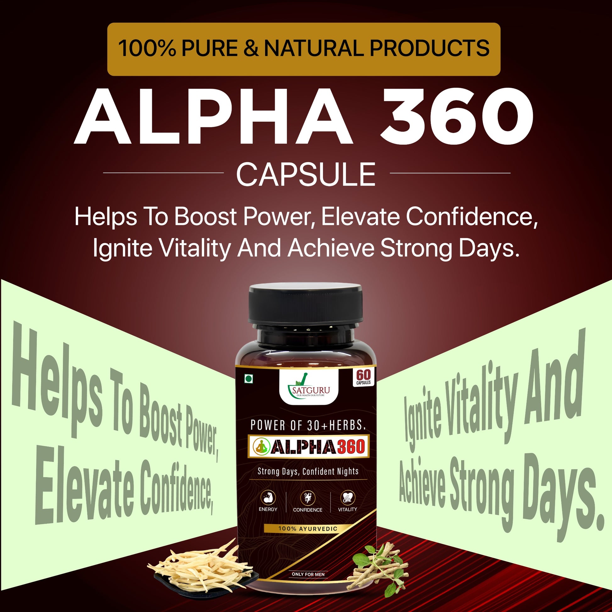 Alpha 360 is a premium 100% Ayurvedic supplement formulated with the power of 30+ natural herbs to help enhance strength, stamina, and confidence.